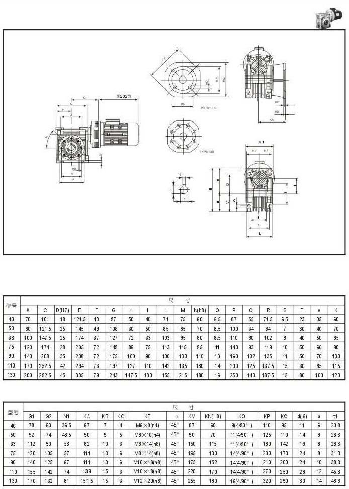 蝸輪減速機(jī)與擺線(xiàn)減速機(jī)組合型技術(shù)參數(shù)表(輸出扭矩N.M)三