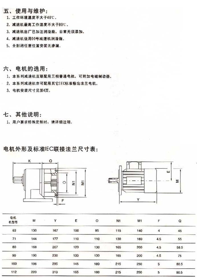 使用與維護電機的選用其他說明電機外型及標準IEC聯(lián)結法蘭尺寸表