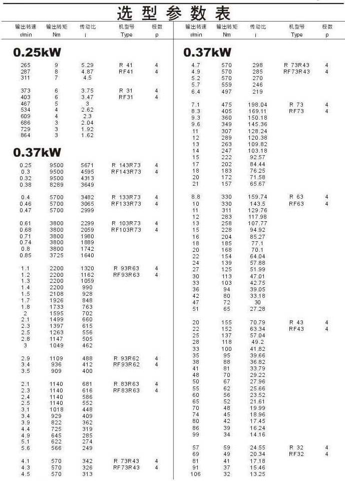 選型參數(shù)表0.25kW(續(xù)),0.37kW