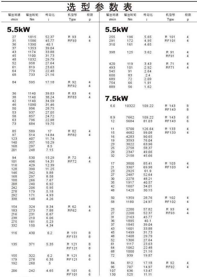 選型參數表5.5kW(續(xù))和7.5kW